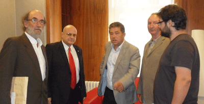 | Na recepción no concello de Pontevedra, o Cónsul de Cuba, o alcalde da cidade e membros da Francisco Villamil e de Mar de Lumes |